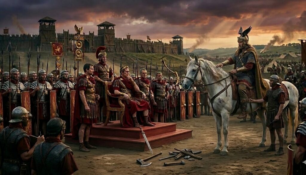 He entered the Roman camp not as a fugitive but as a king who had lost everything yet retained his dignity. Before thousands of legionaries, Vercingetorix circled Caesar’s command tent in solemn procession, a final gesture of defiance and respect. Then, in deliberate silence, he dismounted. Removing his armor piece by piece, he knelt before Caesar and cast his magnificent sword at the Roman’s feet.